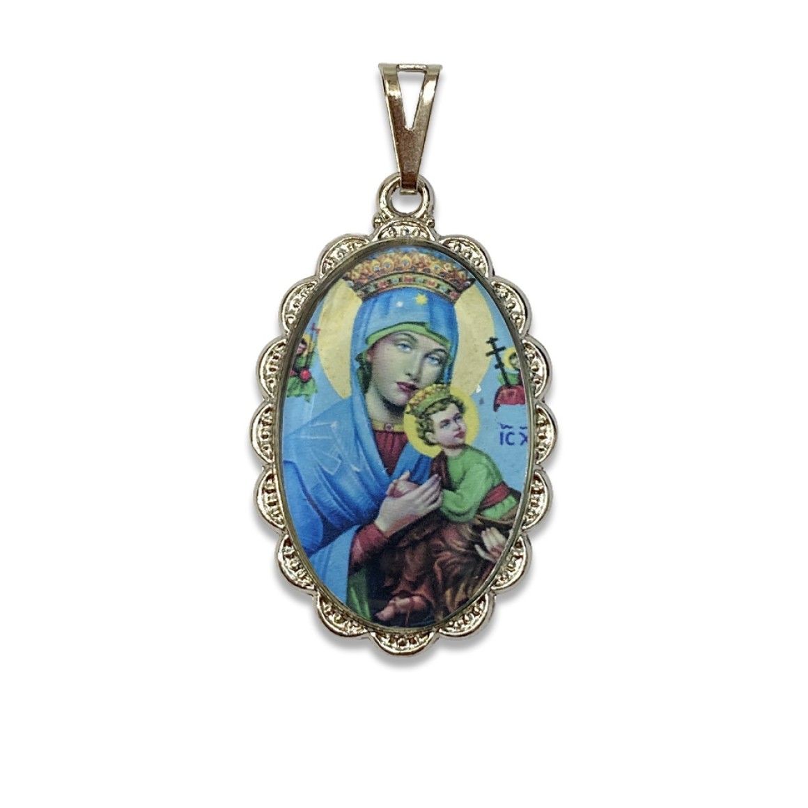 MD128043 - Medalha N. Sra. do Perpétuo Socorro Rendada Níquel - 4,2x2,5cm