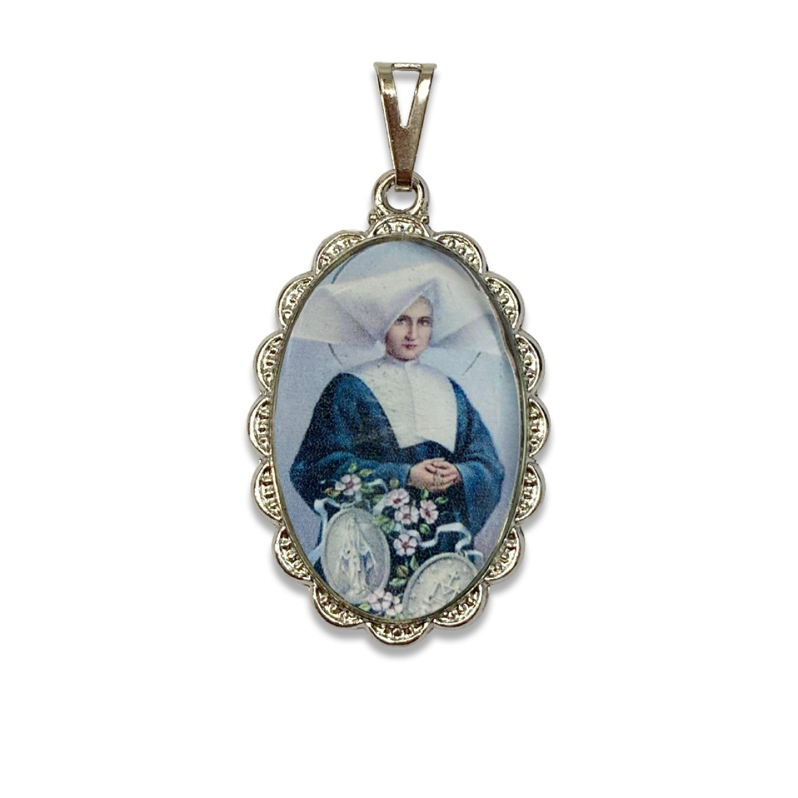 MD128088 - Medalha Santa Catarina de Laboré Rendada Níquel - 4,1x2,6cm