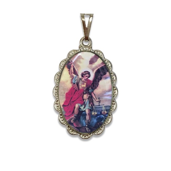 MD128806 - Medalha São Miguel Arcanjo Rendada Níquel - 4,2x2,5cm