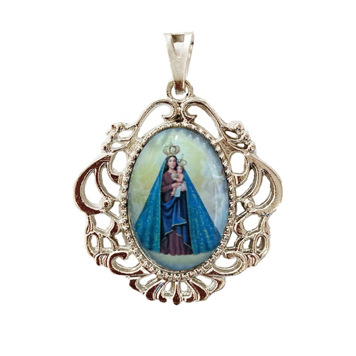 MD129144 - Medalha N. Sra. de Nazaré Camafeu Níquel - 4,5x4cm
