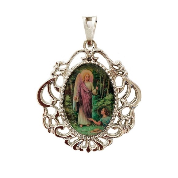MD129806 - Medalha São Rafael Arcanjo Camafeu Níquel - 5x4,2cm