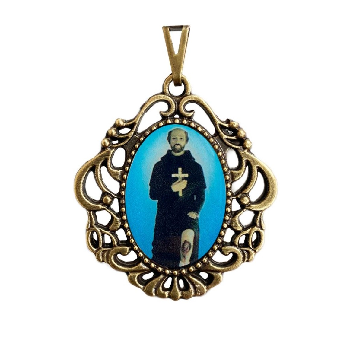 MD129614 - Medalha São Peregrino Camafeu Ouro Velho - 5x4,2cm