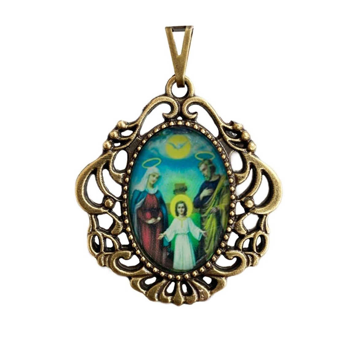 *Medalha Sagrada Família Camafeu Ouro Velho - 5x4,2cm.