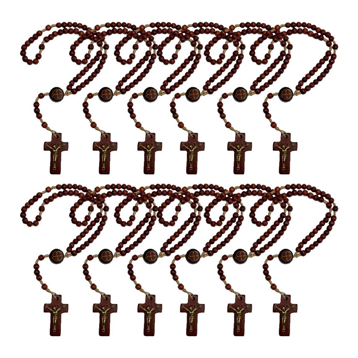 TE930005P12 - Terço São Bento Madeira Vermelha c/ 12un. - 23cm