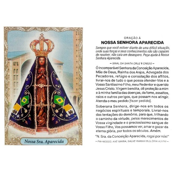 *Oração N. Sra. Aparecida c/ 100un. - 9,5x6,5cm.
