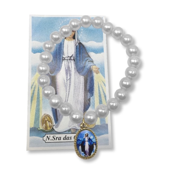PU410408 - Pulseira N. Sra. das Graças Pérola Branca - 11x2cm