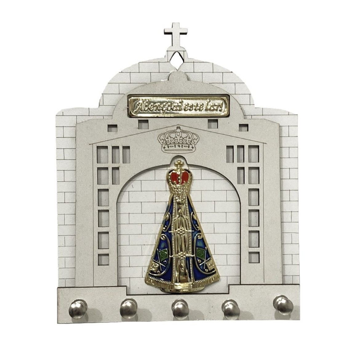 PC381200 - Porta Chaves N. Sra. Aparecida MDF Branco - 18x15cm