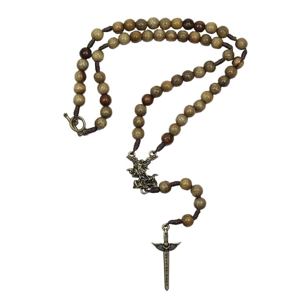 TE330060 - Terço São Miguel Arcanjo Madeira c/ Fecho - 40cm