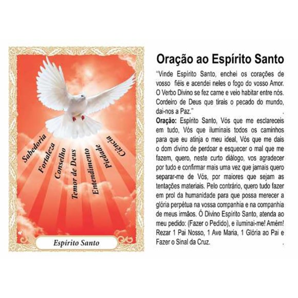 *Oração Espírito Santo 7 Dons Vermelho c/ 100un. - 9,5x6,5cm.