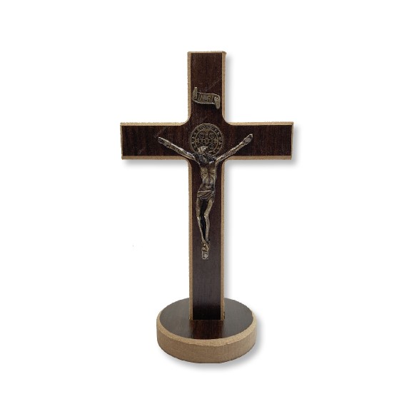 CU760109 - Crucifixo de Mesa São Bento Madeira - 20x11,4cm