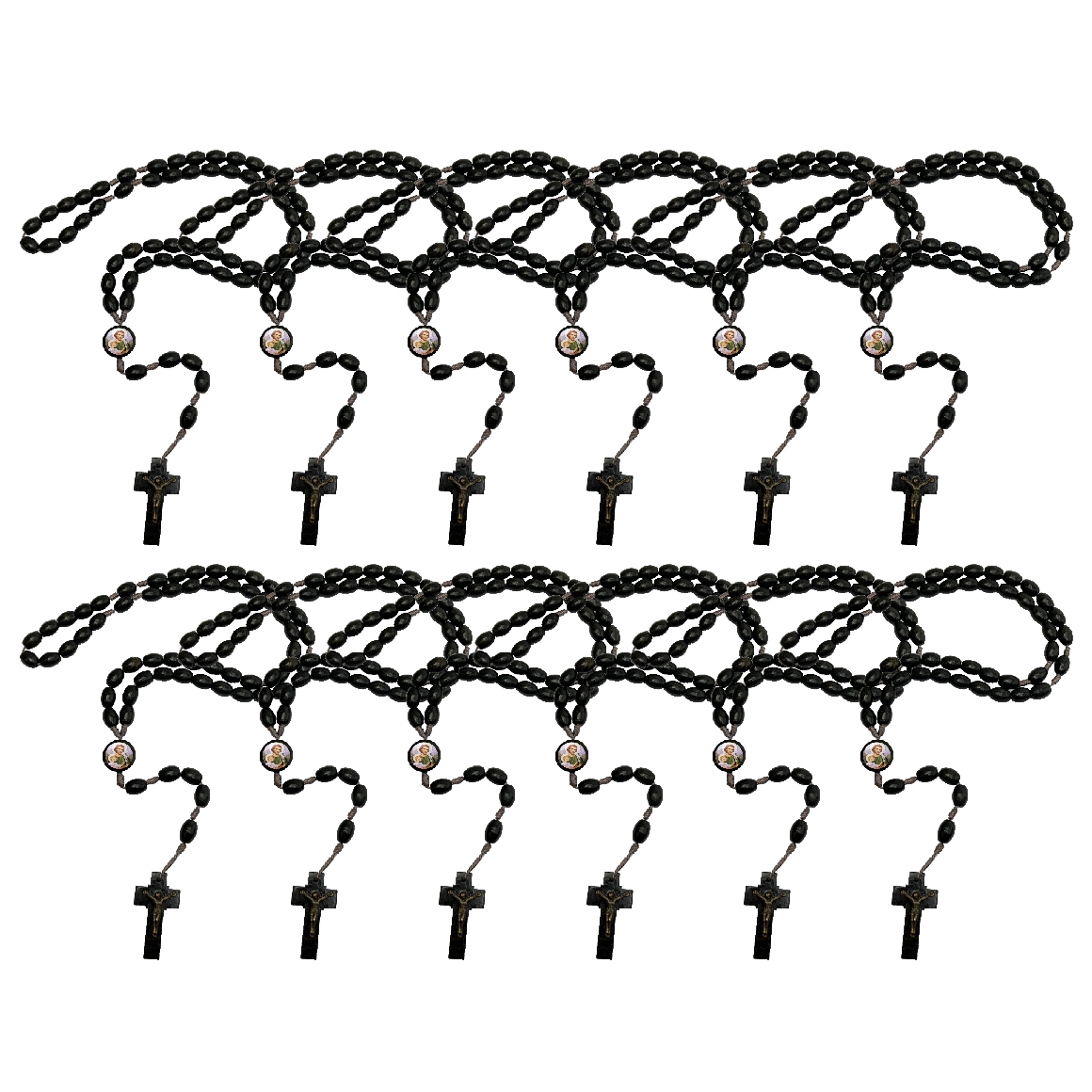 TE942405P12 - Terço São José Madeira c/ 12un. - 44cm