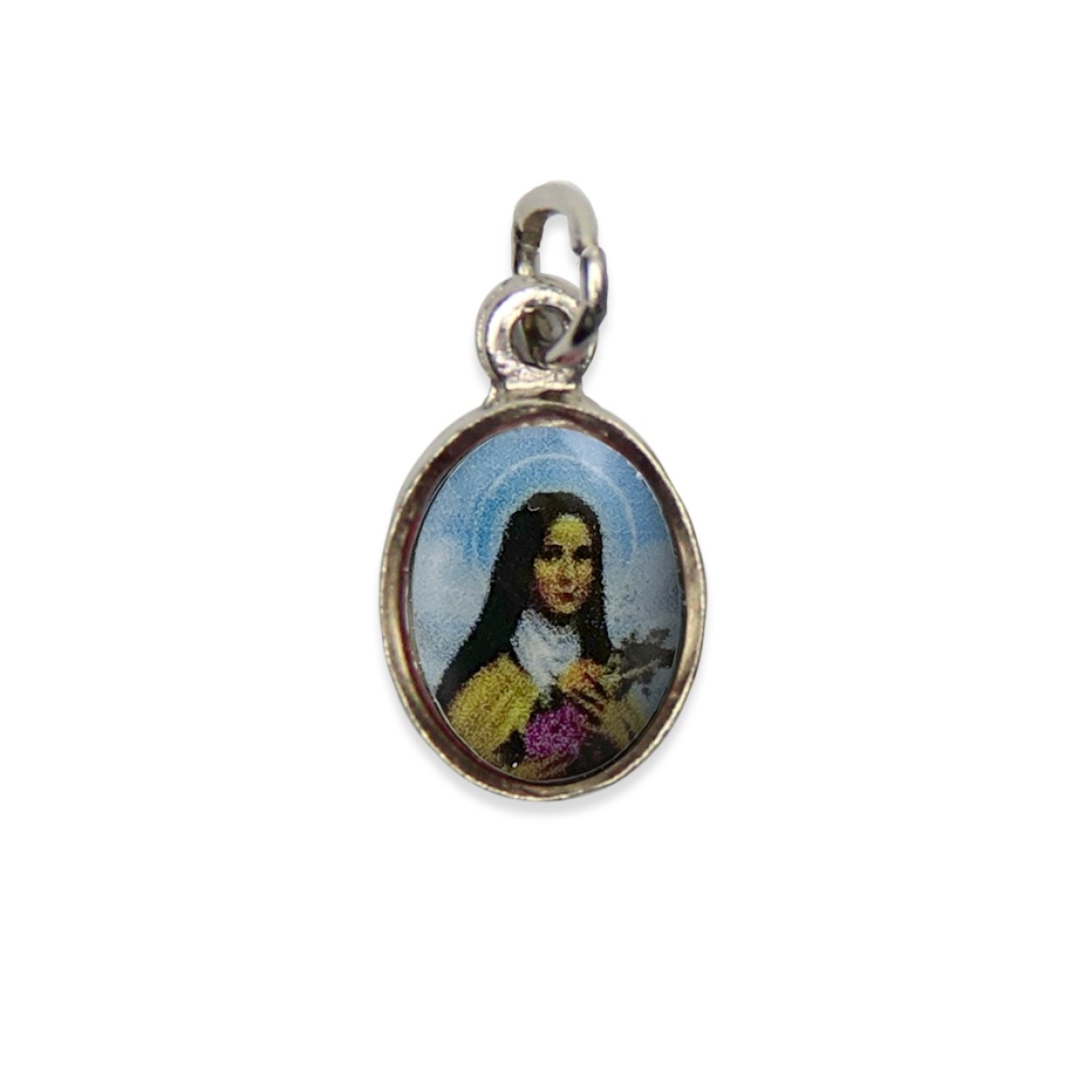 *Medalha Santa Terezinha Das Rosas Pícula c/ Cruz Níquel c/ 4un. - 1,5x1,8cm.