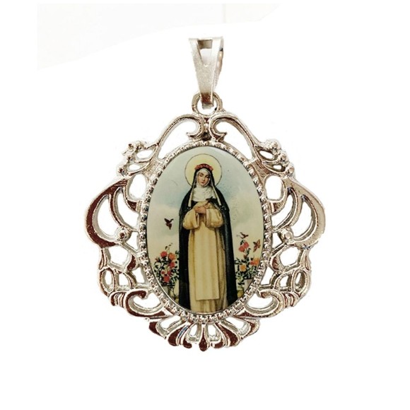 *Medalha Santa Rosa de Lima Camafeu Níquel - 5x4,2cm.